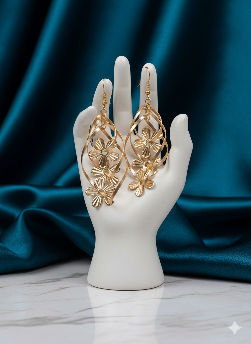 gold floral earrings, party wear earrings, designer earrings for women, lightweight earrings, festive jewelry, wedding accessories, statement earrings, gold drop earrings, trendy earrings 2024, women fashion jewelry